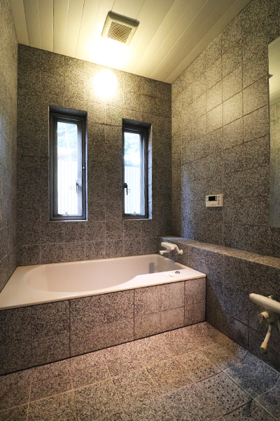 ・石張りのジェットバスのある浴室