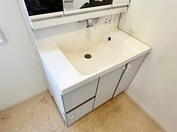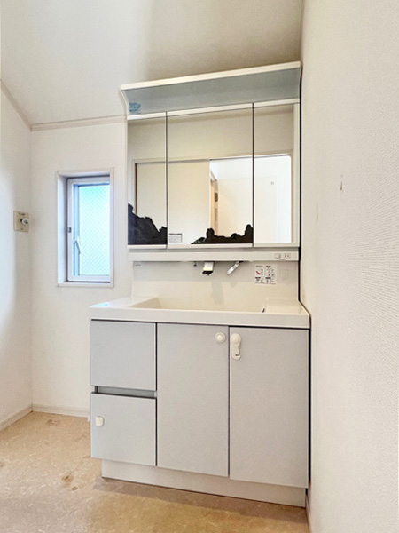 ◆物干しに導線のよいバルコニー階の洗面室(洗濯機置場)