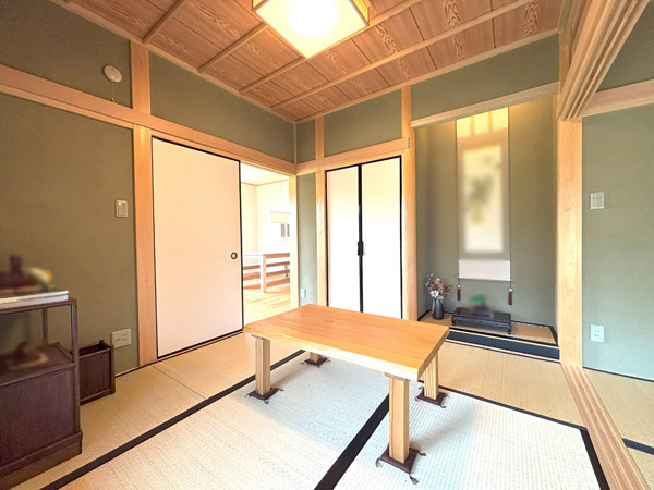 和とモダンの調和を感じる外観、縁側の横のアプローチを抜けると、入った瞬間から落ち着く香りが広がります。国産ヒノキが使われており、木のぬくもりが感じられるこだわりがたくさん詰まった旅館風のお住まいです。1階・2階ともにキッチン・洗面台・お手洗いがございますため、二世帯住宅としてもご利用いただけます。床やクロス、照明等もこだわって建てられており、小上がりの畳や、和室からは隠れ家のような雰囲気を感じられます。ぜひ一度、ご内覧いただき、安らぎを感じてみてはいかがでしょうか。