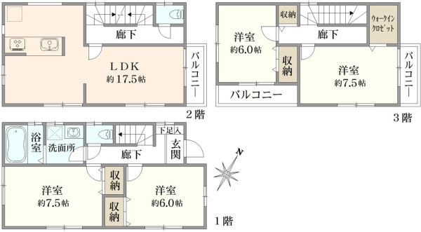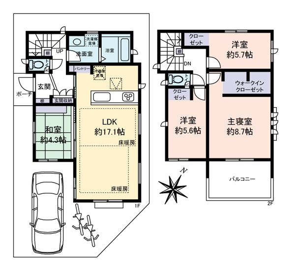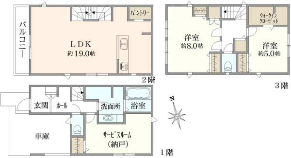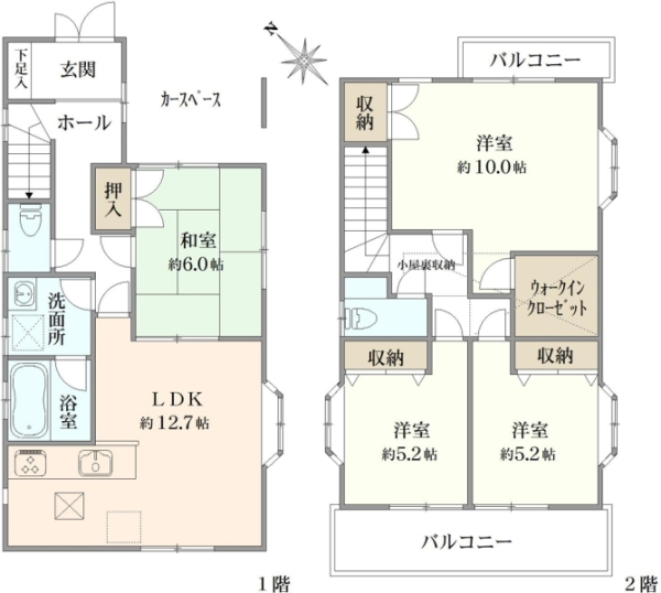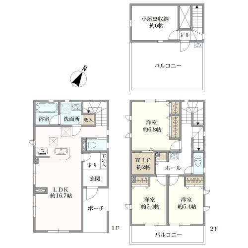 ■3LDK+納戸3箇所■カースペース2台分(車種サイズによる)■3LDK→2階洋室間仕切り施工で4LDKに ※施工費用は買主様となります。■平成30年3月築(2018年3月) ■各居室収納スペース、納戸は大型パントリーとして使用可能■LDK約25.2帖●オープンカウンターキッチン●三ツ口IHコンロ●TVドアホン ●ガス衣類乾燥機排出口有り●タンクレスウオッシュレットトイレ(1階・2階)●1階テラスに物置あり