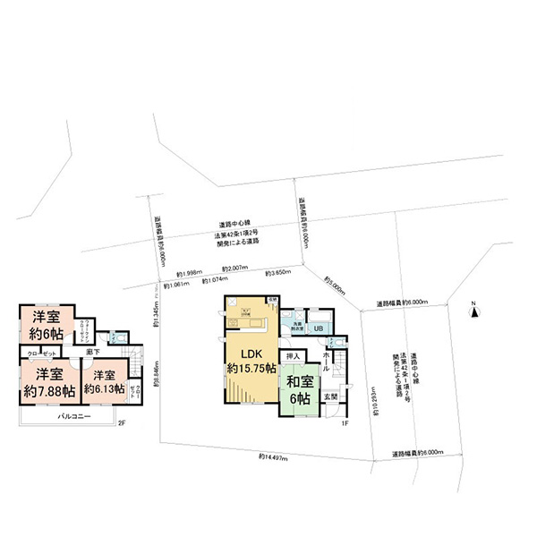 ■約20帖のLDK リビングイン階段仕様です ■キッチン・洗面所には床下収納 ■周辺には充実の生活施設 ■風致地区ならではの整然とした街並 ■南西向きにて日当良好 ■全部屋2面採光による明るい室内 ■駐車スペース2台分あり(車種による制限有) ■前面道路幅員約4.5m