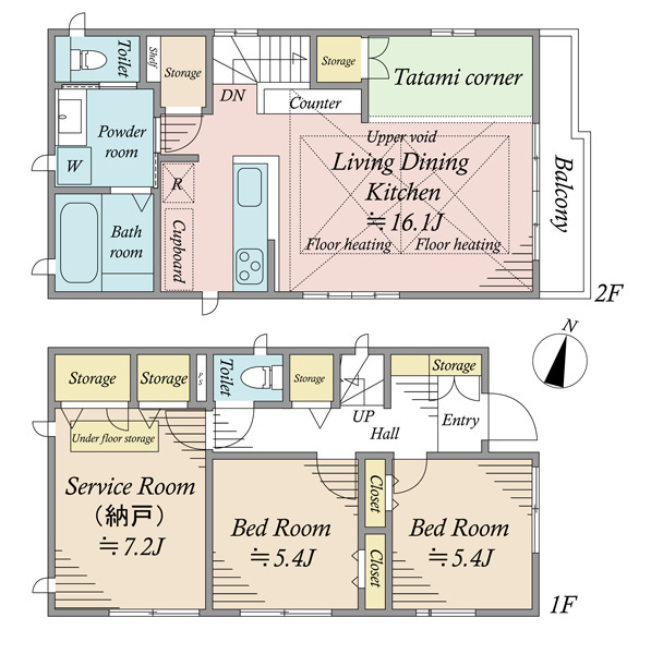 ■2LDK+サービスルーム(納戸)■約18.1帖の広々LDK