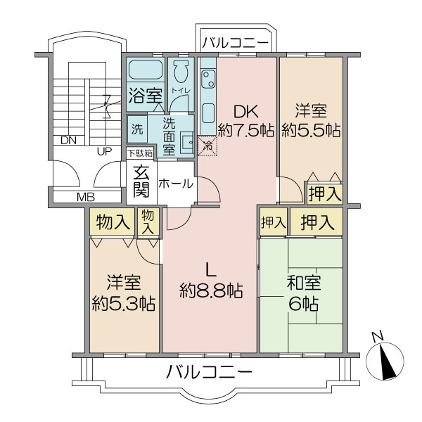 ■複数路線利用可能 ■82.06㎡ 3LDK+サンルーム ■南東向き ■専用庭付(21.5㎡) ■1階住戸の為、階下への音を気にせず生活いただけます ■リフォーム履歴有(2010年12月 キッチン・洗面台・トイレ交換、全室フローリング・クロス貼替、和室から洋室へ間取り変更(リビング横:約5.5帖)、建具交換、間仕切建具設置、洋室7.4帖、洋室6.5帖の窓:インナーサッシ設置、洋室7.4帖、洋室6.5帖:ココカラット設置、LD、キッチン部分:LEDダウンライト設置、玄関にシューズインクローク設置)