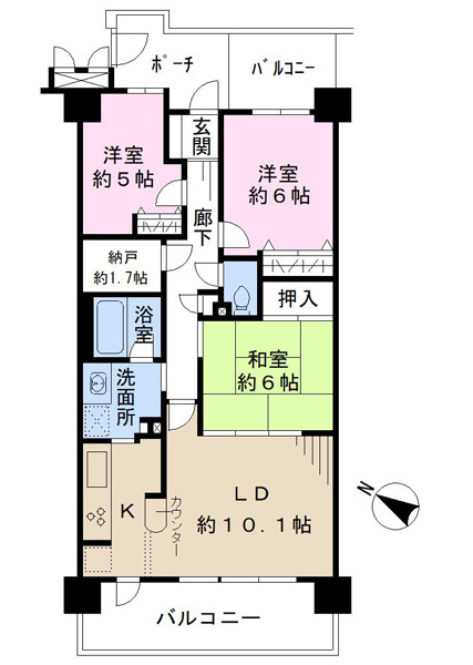 総戸数278戸のビッグコミュニティ 南西×北西角部屋 専有面積90.59㎡、3LDK+納戸 ■バルコニー2か所、各部屋に開口あり ■南西側バルコニーには便利なスロップシンク付き ■プライバシーに配慮された専用ポーチ ■約6.0帖の納戸の他にウォークインクローゼット、 クローゼット×2、押入、物入など豊富な収納 ■安心のTVモニター付きオートロックシステム■不在時に便利な宅配ボックス ■シアタールーム、キッズルーム等の充実した共用施設 ■ペット飼育可(飼育細則有り)※契約不適合責任免責・設備免責