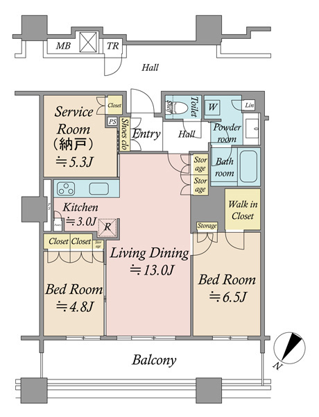 ■3駅2路線利用可(ゆりかもめ、りんかい線) ■都バスのバス停(有明テニスの森)がマンション前にあり、 銀座・東京駅方面や豊洲方面へのアクセス良好。■5階部分、北西向き。75.44㎡(トランクルーム面積0.67㎡含む)■マンション1階はスーパー文化堂(22時まで営業)があり、 デイリーヤマザキや有明ガーデンも至近でお買い物が便利な立地。■廊下が少なく、居住空間の広さがしっかり確保された間取り。■ウォークインクローゼット(洋室6.5帖)他、全居室、リビング・キッチン・洗面室に収納有。