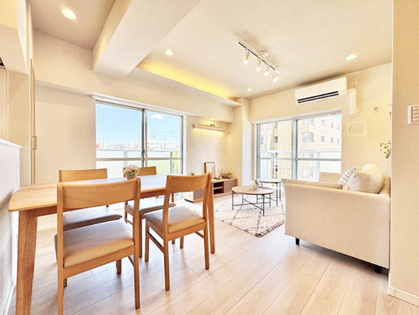 三方角部屋&南東向きバルコニー/陽当たり通風良好/2022年大規模修繕工事実施済/2019年直結増圧給水方式変更工事実施済/長期修繕計画あり/フルリノベーション/家具エアコン付/アフターサービス保証付リノベーション内容(2025年7月11日完成)・フローリング、クロス ・洗面、トイレ ・キッチン ・ユニットバス ・建具 ・新規エアコン設置(1台)