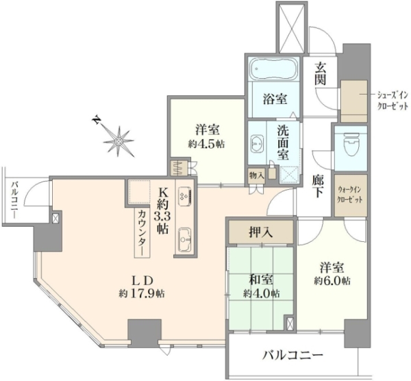 ●25階部分、北東角部屋●専有面積74㎡、2LDK●2012年築●33階建、総戸数300戸●スカイラウンジ●ゲストルーム●CATV使用料:月額324円●町内会費:月額200円