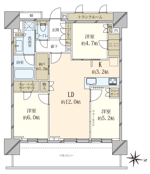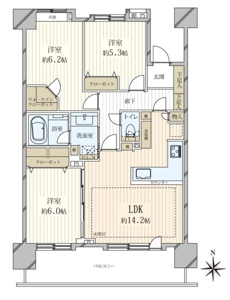 ■南向き5階3方向角住戸■陽当り・眺望・通風良好■82平米超の3LDK■総武線・東武亀戸線・都営新宿線 利用可能■1992年(平成4年)3月築■南×東×西に窓が有り明るいお部屋。キッチン・浴室・玄関にも窓有り■浴室フローリング張り■独立性を高める玄関ポーチ