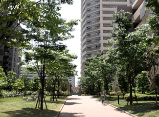 南側(隣接)の小名木川のせせらぎとマンション内の約3800本に及ぶ植栽が水と緑の調和を生み出し、街並みを考慮したアースカラーの外観とアクセントの緑のラインが近隣のステイタスシンボルタワーとしての表情を見せています。共用施設も26階スカイラウンジ(有料)や1階学童クラブ室(江東区が運営・有料)などがあります。
