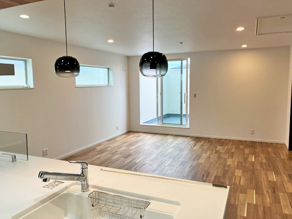 2LDK+2S●角地●床暖房●グルニエ●カウンターキッチン●シューズインクローゼット●トイレ2か所●24時間換気●車庫●買い物施設、小中学校が徒歩圏内につき、生活利便性良好
