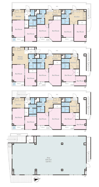 オーナーチェンジ物件 想定年間賃料収入:7,440,000円 表面利回り:8.75% (満室時) 現在満室稼働中・総戸数:10戸(店舗1戸:128.52平米+住居9戸)・住居の専有面積:29.16平米〜36.45平米