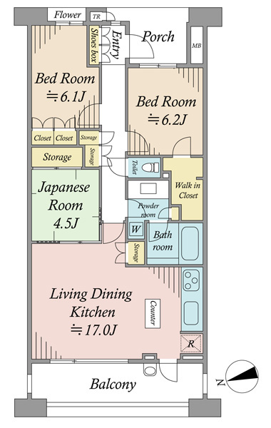 ■LDKは約17畳と一家団欒のスペースにぴったり■生ごみ処理に便利なディスポーザーあり■お子様の遊び場や客間としても便利な約4.5畳の和室あり■各居室にクローゼットや押し入れがあり、収納力豊富■バルコニーにはアウトドア用品のお手入れに便利なスロップシンクあり■玄関にはプライベート性の高い専用ポーチあり〜備考〜専有面積にはトランクルーム面積0.22㎡含む。