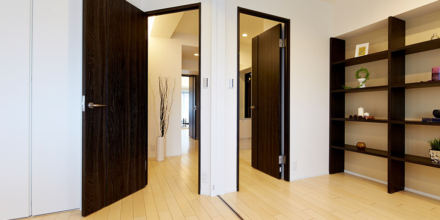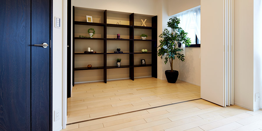 LDに独立した空間としても利用できるDENを設置。2部屋を一体で使える稼動ドアを導入。