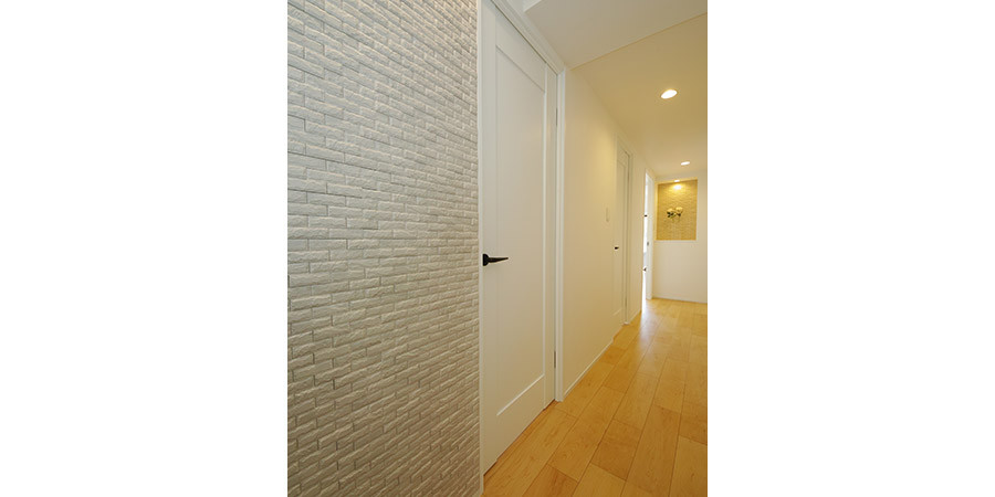 既存の素材を活かしたリノベーション。エコカラットやアクセントクロスづかいで遊び心が出ています。