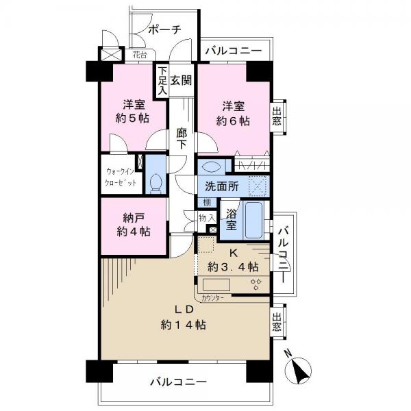 JR津田沼駅徒歩10分 3路線3駅利用可能 専用ポーチ 3面バルコニー ウォークインクローゼット